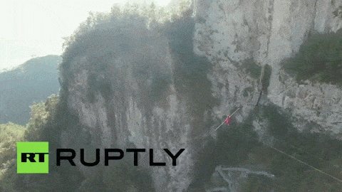 Crazy acrobats race across tightrope over 1,200m canyon (VIDEO) on.rt.com/78y2